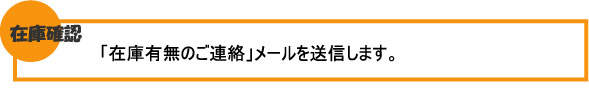 在庫の有無を確認後、「在庫有無のご連絡」メールをお送りいたします。
