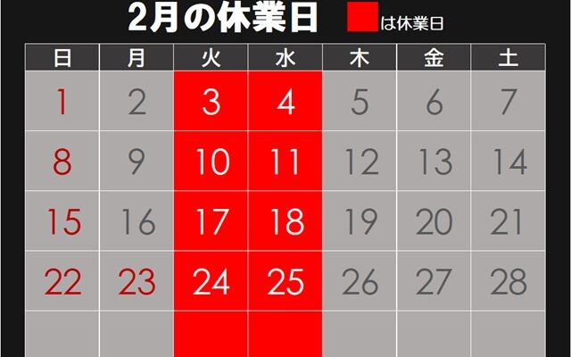 明後日2月11日(水)は建国記念の日で 祝日ではありますがお休みさせていただきます。