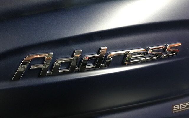 店頭にスズキ アドレス125の新車が1台ございます
