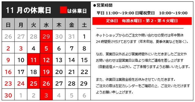 ■当店休業日は、自動返信メール以外のご返信およびお問合せの返信、 また出荷などの業務全般をお休みさせていただきます。 休業日中にいただいたご注文、お問合せにつきましては、翌営業日より対応させていただきます。 ご了承いただけますようお願いいたします。